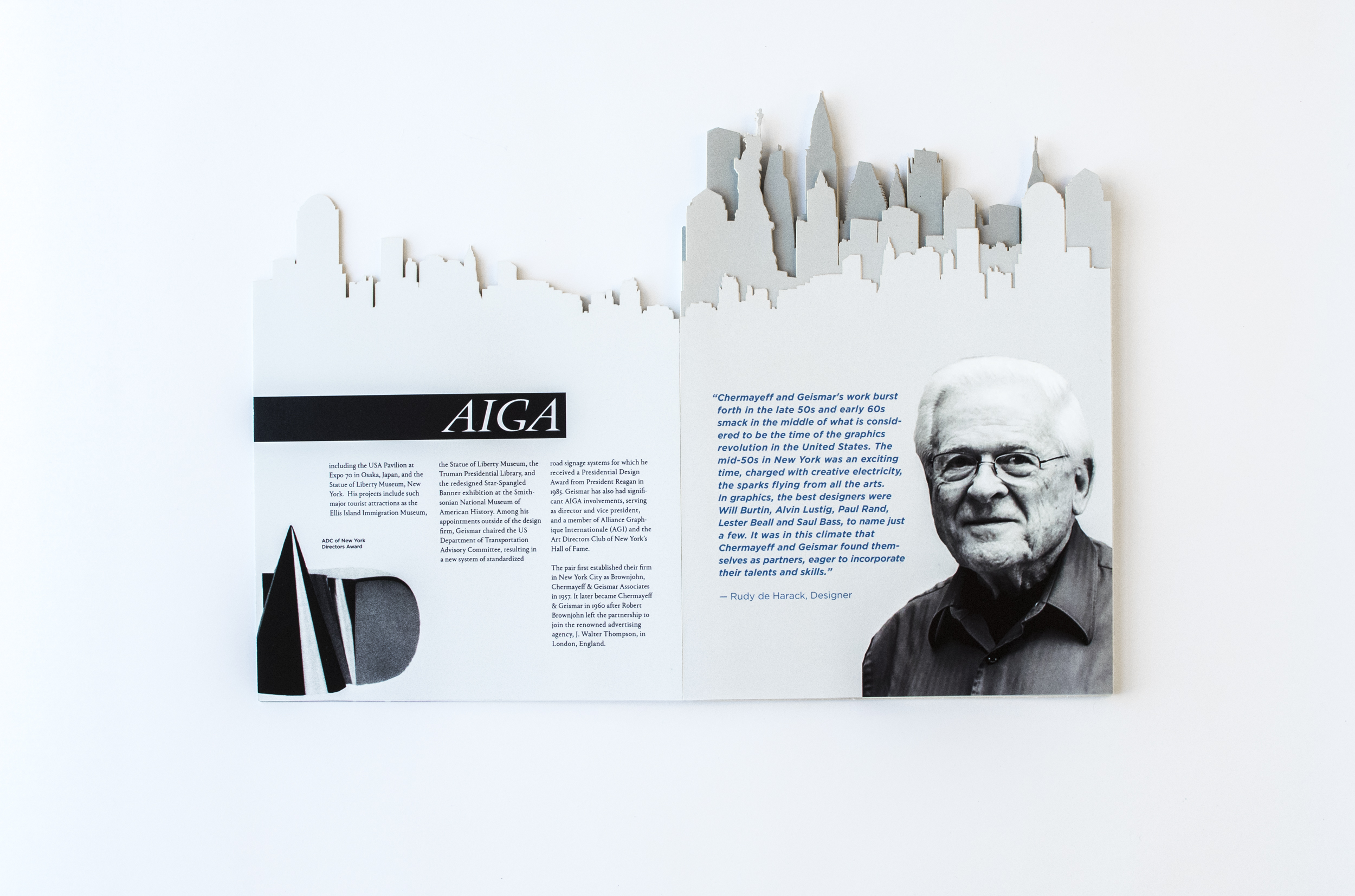 How should one frame the work of other designers? This piece consolidates the lives and works of Chermayeff & Giesmar in a timeline based accordion book.